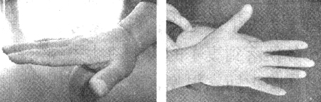2、掌心揉法(见下图),此法适合揉胃部、脐部、腰部、背部、膝部等。