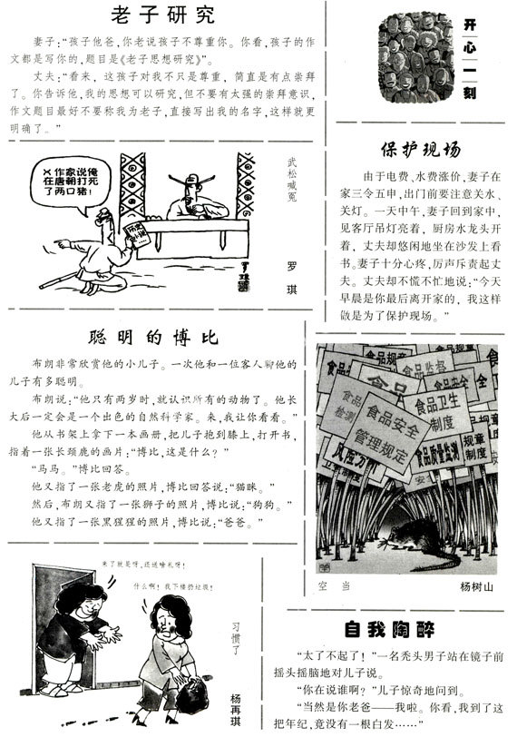 妻子:“孩子他爸,你老说孩子不尊重你。你看,孩子的作文都是写你的,题目是《老子思想研究》”。