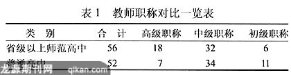 本研究首先采用横向收集语料的方法,选择安徽省六安市三所省级以上示范高中和三所城乡普通高中的英语教师作为调查对象。共向六所学校发出问卷150份,重点高中收回有效问卷56份,普通中学收回有效问卷52份,具体情况如下:
