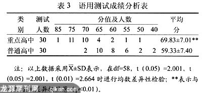 统计结果显示,被测教师的语用知识整体水平不高,重点中学的及格率较高,为93.3%,但只有一人达到良好以上等次;普通中学及格率相对偏低,66.7%均在良好以下等次。重点中学和普通中学教师在语用知识水平上差异极显著,这种差异有可能导致他们自身语用能力和语用教学效果上的差异,连同两类中学的高级教师职称比例差异(重点中学为35.1%,普通中学11.5%)和学缘结构差异(重点中学有38.2%第一学历为本科,普通中学只有15.4%)等共同导致两类学校总体师资水平的差异;