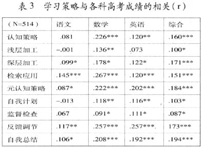 3.高三学生学习策略运用与高考成绩的关系