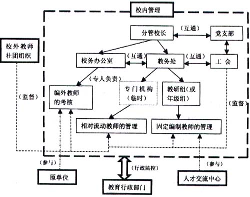 “管理是在特定的环境下进行的管理者与被管理者相互影响的行为”,所以教师分类管理的实施需要校内校外、全校上下共同来参与完成,需要学校、社会,学校领导、学生、家长等各方面的协调统一,建立一种开放式的管理网络: