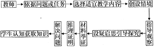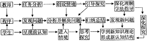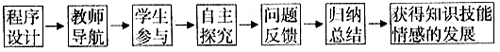 该模式是强调教师与学生互动作用,教师根据教学目标和内容,创设特色的教学情境,诱导学生通过已有知识的回顾,进入程序,自主学习,独立地发现问题,展开探究活动,分析、归纳、总结和解决问题,获得知识、技能、情感发展的循环探究过程。