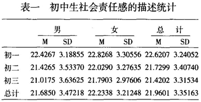 1.初中生社会责任感的总体特征。总体上看,初中生的社会责任感的表现水平并不高。这可能有以下几方面的原因。