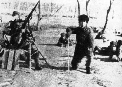 中国军队将士准备射击来犯的日机