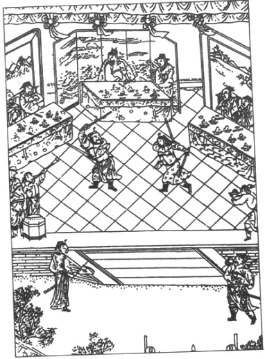 再一个是说,金章宗的宠妃李氏,气焰薰赫。一日宫中设宴,一位伶人叫玳瑁头的出场表演。有人问:“近日国家有何符瑞?”玳瑁头答:“你没听说凤凰出现了么?”对方说:“听说了,可是未知其详。”答:“凤凰朝四面飞,其所应者亦不同:向上飞则风调雨顺,向下飞则五谷丰登,向外飞则四国来朝;若是向里飞呢,便能加官进禄。”章宗听后,一笑而罢。原来“向里飞”双关“向李妃”,意谓奉承谄媚李妃者可以加官进禄。