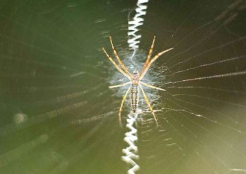 当我们观察着园蛛,尤其是丝光蛛和条纹蛛的网时,我们会发现它的网并不是杂乱无章的,那些辐排得很均匀,每对相邻的辐所交成的角都是相等的;虽然辐的数目对不同的蜘蛛而言是各不相同的,可这个规律适用于各种蜘蛛。