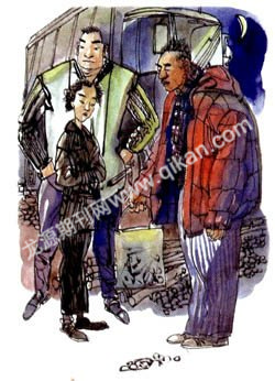 男孩双手护着头,瑟瑟发抖地说:“我、我想找点水。”胖司机一时没有反应过来,吼道:“扯蛋!找水怎么找到我车底下来了?还不快说实话!”男孩一下吓坏了,眼睛直勾勾地看着胖司机,颤着声音说道:“我看院子里停着车,心想水箱里肯定有水,就钻了进来……”胖司机一听来火了:“妈的,原来是要偷我水箱里的水!想害死我啊!我这车值好几十万,要是没水烧坏了车,找谁赔去?”说着抬腿又要踢男孩,结果被身旁的老简给拦住了。