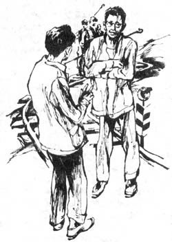 杨大炮被赶下车后心里有点慌,他不知道这是什么地方。他走到车站附近的一个小饭馆里,扫光了人家的剩菜剩饭,然后沿着铁道继续往前走,他想有机会再爬火车。杨大炮走到一段山坳的时候,意外地看到前面走过来一伙人。这时候天色已暗,这伙人也发现了杨大炮,他们停下商量了一阵,接着一个戴眼镜的走了过来,说:“兄弟,落难了是吧?”