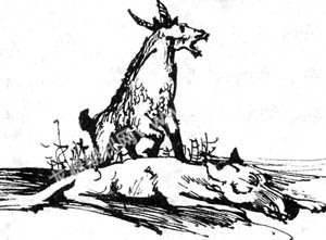 阿原很伤心,“腾”地跳起来,扑向羊妹妹—他要永远和她在一起,可就在这时,“砰—”一声枪响,阿原被猎人的枪射中了心脏,开枪的猎人鄙视地说:“狼就是狼,什么时候也变不了要吃羊的本性!”