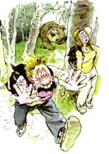 事后妻子生气地说:“当那只熊出现时,你怎么可以扔下我就跑了?你曾经发誓,为了我会勇敢面对死神的。”