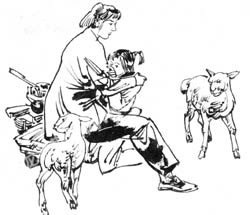 婷婷妈妈重新跑回柴房,把写了字的纸揉成一团,塞进了门缝。没多会儿,柴房的门“吱呀”一声开了,果然像婷婷妈妈想的那样,眼前的景象让人肝肠寸断:婷婷正搂住两只洁白的小羊羔,哭得像个泪人儿一般。而那只小羊羔,蜷在婷婷的怀中,嘶哑的“咩咩”声有点像孩子在睡梦里模糊不清的呼唤妈妈的声音。婷婷妈妈冲过去,一把把婷婷搂在怀里,婷婷依偎着她,递过来一张被泪水打湿了的纸,上面写着: