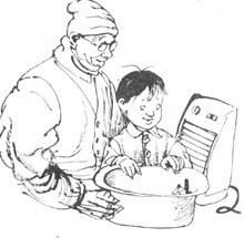 后来,他的祖父看到了,笑了一笑,帮他把那只乌龟放在一个暖炉的上面。过了一会儿,乌龟便因温暖而渐渐地把头、四肢和尾巴伸出了壳外。男孩见状开心地笑了。