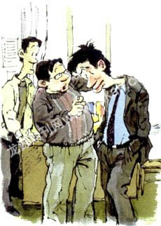 美术老师说:“这样吧,我把我的假发套送给你,如果是美女,你就把它戴上装酷;如果是恐龙,你就把假发套翻戴上,装秃子吓跑她。”