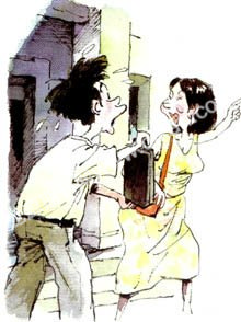 正当小李沮丧地准备打道回府的时候,冷不防身后有人叫了他一声。回头一看,这不正是踏破“皮鞋”无觅处的小鹃吗?小李抹了一把汗,说:“我可找到你了,你这是要到哪里去啊?”“快到开饭时间了,我正要到食堂去做工呢。”小李一听就懵了:“你不是搞计算机的吗?”小鹃笑了起来,说:“咳,你别听他胡说,我哪是搞计算机的,我在食堂工作,不过——他说得也没错,最近食堂实行电脑打卡了,我就负责操作打卡机。”