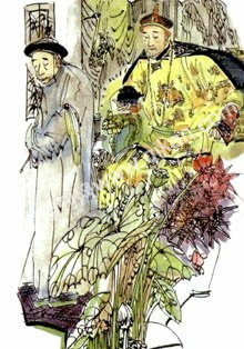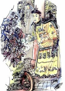 雍正忙让太监把那三件宝物呈上来。只见一件是一只镂金镶玉的尖嘴孔雀,一件是一把模样古怪的小锯刀,还有一件是个镏金玉石壶。雍正拿起三宝,左瞧右看,也弄不明白这三样东西有何用处。此时,上书房大臣张廷玉上前说:“听闻礼部侍郎刘言春博览群书,通晓古今,无物不识,不如让他前来鉴宝。”雍正一听,立即下旨宣刘言春上殿。