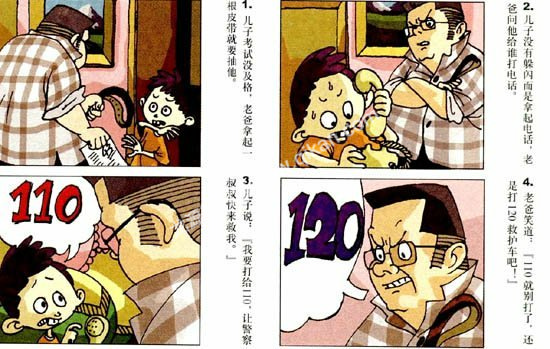老爸笑道:“110就别打了,还是打120救护车吧!”