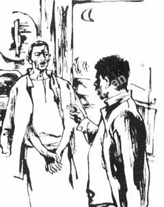 周老汉趁机打开屋门往外冲,可刚出门,身上就结结实实地挨了一下子,“扑通”一声跌倒在地上。“天啦,怎么是你老周?”田大嘴大吃一惊,忙上来把周老汉拖到一边。原来打倒周老汉的是田大嘴。田大嘴不是挨了周老汉一扁担,昏倒在坑里吗?其实啊,周老汉那一扁担是演给歹徒看的,田大嘴是个什么人,马上就假装昏死过去。后来,他又顺着周老汉插到坑里的扁担爬了上来,然后操着扁担守在门口,想寻着机会就给歹徒一下子。谁知第一个冲出屋子的不是歹徒,而是周老汉,他一扁担把周老汉打倒了。