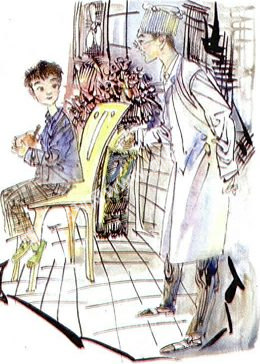 孩子这般天真的话,说得老王心里酸酸的,他想了想,从柜台上拿了半只鸭子,装进一只食品袋里,递给小男孩儿,说:“拿回家去,和你妈妈一起吃吧!”