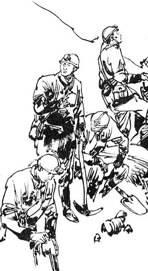 忽然,一个罐斗里传出一声惊叫,矿工老陈在用电线勒自己的脖子,正使劲拽呢!大伙赶紧扑过去,松开了那根电线。老陈哭着叫道:“早晚是个死,你们就让我先走一步吧!”这话触到了大伙的心坎上,老万一向是个刚烈的人,可这会儿他也忍不住哭出声来,其他几个有哭的,有叫的,有骂的,有撞岩壁的,直到耗尽最后一丝力气,大伙躺着再也动不了啦……