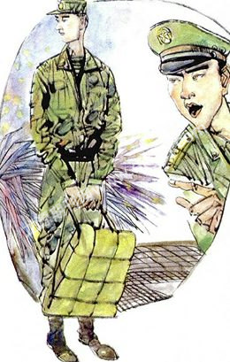到了部队,我领军装没有遇到麻烦,都有我的尺寸,可没想到被子却明显短了一截,统一尺寸的被子盖在我身上,稍稍往上一拉,脚就露出来了,要是把脚裹住,肩膀却又得挨冻,没办法,晚上我只得弓着腰侧着睡,夜里常常要醒好几次。