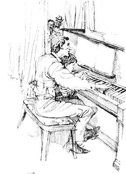 母亲为了让儿子在钢琴技艺上有更大的进步,便带着他去听著名钢琴大师的音乐会。