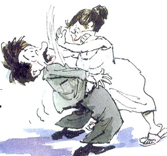 小兰本是个软心肠,听阿P把话说完,又好气又好笑地埋怨道:“你呀,这事干吗要瞒着我呢?”然后,她用手轻轻揉着阿P额角上鼓起的那两个核桃包:“还疼不?”