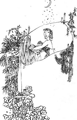 守了几个晚上,铁山觉得麻烦,要杏子回屋里洗。杏子尝到了在外冲凉的快乐,说啥也不愿再回屋里受那份罪。铁山一想,也好,干脆找来几米旧棚布,在井边扎了个简易围栏,安上门,还拉上了电线,在围栏里装了个绿莹莹的小灯泡,看上去还真像个小浴室,这样,杏子才敢放心在围栏里冲凉了。