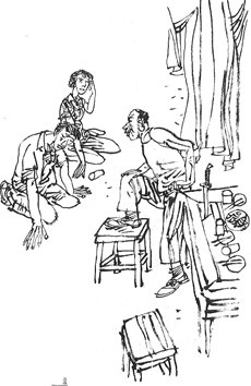 就在这时,“砰砰”有人敲门了。良子冷冷地走过去拉开门,果然是大虾来了。良子一把拉过大虾:“兄弟,几年没见了。”大虾一看春秀脸上的泪痕,明白事情已经露馅了,他讪讪地对良子说:“是、是的,大、大哥,我也想你啊。”春秀躲进了厨房。