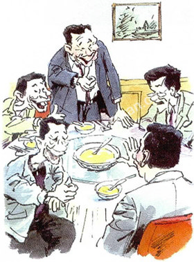 董事长听了,不觉纳闷:莫非我的舌头有问题?他又咂了一小口,还是觉得有点馊,但他不好说,以为这就是本汤独特的风味。