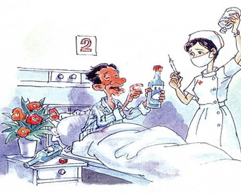 正当老洪头念叨着“老白干疗法”时,小护士一脚踏进了病房。见吊瓶里已经没了药水,便一边取空瓶,一边埋怨道:“你看,药水都快滴完了,你也不按铃通知我来换一瓶。”