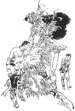 村主任从柴草中一跃而出,来到麻瞎子门前敲门,只听麻瞎子在屋内说:“村主任,我钻被窝睡觉啦,有事明天说吧。”村主任扯着嗓门嚷道:“你给我开门!我现在就有急事要说!”