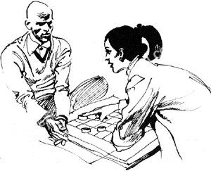这天,施纳汉姆家突然来了一位不速之客,是个年轻漂亮的东方女孩儿,自称申雪,是专程慕名而来和施纳汉姆切磋象棋棋艺的。施纳汉姆热情地把申雪请进客厅,摆上棋盘,两人就隔着楚河汉界厮杀起来。