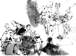 有一次,一位说书人在茶馆里讲“封神演义”,讲得十分精彩,听书的人特别多,连过道里都站得满满的。正讲到精彩处,台上说书人“啪”重重一拍醒堂木:“欲知后事如何,且听下回分解!”