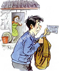 这天傍晚,刘军下班回到家里,感觉挺累的,就把一身脏衣服顺手搭在院内的铁丝上,想等有空时再洗。第二天下班回到家,刘军发现自己换下的那身脏衣服洗干净后挂在铁丝上晾干了,他明白了:他和张虎身材差不多,穿的又是厂里统一发的工作服,张虎的老婆粗心,把这衣服当成是丈夫的了。刘军收起衣服,心里直乐。