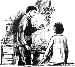 黑子正在茅草棚前劈柴,看见香妮来了,先是大吃一惊,继而一阵惊喜,但随即便冷下脸来,说:“你来干什么?这不是你该来的地方。”
