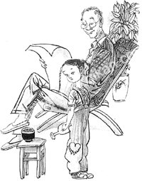 第二天面试时,招聘方问李剑愿不愿意从最基层干起,李剑一反以往的挑剔态度,毫不犹豫就答应了。刚上班的那些日子,正碰上高温,他背着沉甸甸的产品宣传资料,在大街小巷穿行,直晒得头冒汗,嘴冒烟。半道上,他看到一位老人在卖一元钱一杯的冰镇中药凉茶,就忍不住从口袋里掏了一元硬币递过去。当那老人抬起汗漉漉的头,要把凉茶递给他时,李剑惊呆了:这老人正是自己的父亲,那脸已经被晒得墨黑,几乎认不出来了。