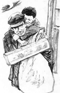 丁大根这回是彻底傻了,呆呆地站在那里,一动不动,手电筒也掉到了地上。那孩子一双泪眼在黑暗中闪烁着亮光,像剑一样刺痛了丁大根的心。丁大根下意识地弯下腰,将孩子抱了起来,安慰说:“你别怕,叔叔送你去医院……”然后,他把蛇皮袋口扎紧,往颈脖子上一挂,把孩子往背上一驮,走出了筒子楼。