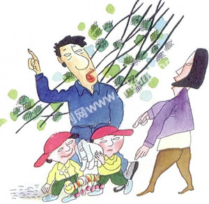 傍晚,父亲和那位客人踏进家门,孩子跑进厨房悄悄对他妈妈说:“妈妈!快来看,那个夫人是男的!”