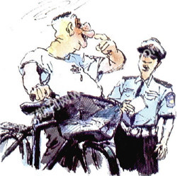 一个醉鬼骑自行车闯红灯被交警拦下,并被当场罚款二十元。 醉鬼嘴里喷着酒气:“为,为什么罚我?”交警厉声道:“因为你违反了交通规则,犯了错误!”醉鬼不服气地说:“犯了错误?那,那罚酒好了,干吗罚钱?”(伊豆)
