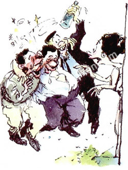 小张、小王、小李三个人在一块喝酒,结果三个人都喝醉了,其中小李醉得最厉害。于是,小张、小王就一左一右搀扶着小李回家。小李妻子平时就反感丈夫喝酒,今天见他们三人搂在一起的狼狈相,不禁责怪道:“你们怎么能喝成这个样子呢?”