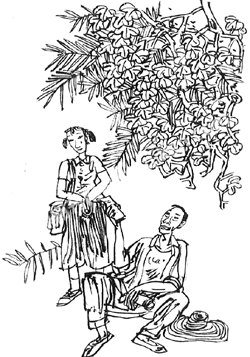 阿朱跑了过去,是父亲。父亲正蹲着吸旱烟,看到阿朱,忍不住咧开嘴笑了。阿朱一只胳膊挎在父亲的胳膊上问:“爸爸,你什么时候来的?是不是等了很久?”