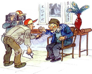 主持人对李老汉说:“我们采访你,你千万不要紧张。”