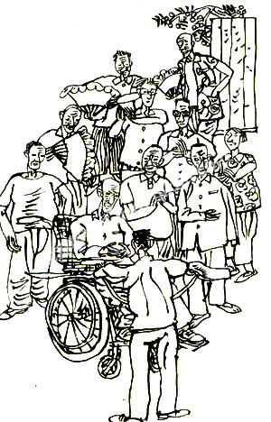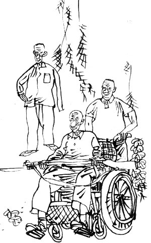 过了十分钟,老头回来了,推着一辆轮椅。轮椅上坐个人,须发皆白,嘴眼歪斜,半身不遂,看来是中风后遗症。