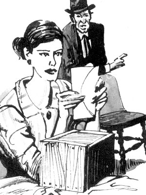 诺玛将盒子打开,盒子里有一个小木盒,上面镶嵌着一个红色的按钮,一个圆形的玻璃罩盖住了按钮。诺玛试着揭开玻璃罩,但没能成功,它是锁住的。诺玛的好奇心被激发了,她将这盒子调了个方向,发现盒底上贴着一张纸条,上面还有一行字:斯坦德先生今晚8点将来拜访您。