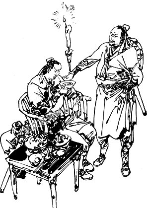 “姐姐,你在干什么?”弟弟傻根咬着手指进来。李妻笑眯眯道:“这是给你姐夫喝的,他鼻子不好,分不清醋和酒。最近江湖中流传一种毒药,专门以醋为引。姐姐吓唬吓唬他,看他还听不听话—唉,跟你说这干吗—来,帮姐姐端出去。”