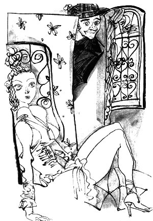 这天,约翰精神焕发,到了晚上,将近十点钟时,他便守候在路旁,眼睛紧盯着一道厚实的院墙。不大会儿工夫,院墙的一扇门打开,出来一个男人,只见他仔细地把门锁好,然后迫不及待地离开了。约翰便拔腿猛冲过去,以矫健的步伐穿墙过壁,顺顺当当地一头扎进被锁的美人卧室。美人如醉如痴,张开双臂迎接他,直至深夜,两人有说不尽的柔情蜜意。