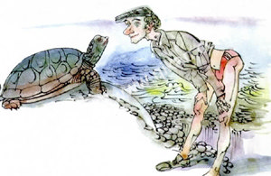 车开到海边,管理员才给海龟松了绑,帮它重新翻过身来,可大海龟一动不动,任凭海水拍打着它的甲壳,游人想它一定是被折磨死了,心里悲愤交加,正待发作,这时,只见清凉的海水一下接一下地冲刷着大海龟,一个大浪打来,海龟谨慎地探出头,小心翼翼地动了动前腿,又是一个巨浪,大海龟憋足了劲儿,四肢用力,缓慢地把身体推向前方,直到全身浸在水里,笨重的它突然变得优雅自如,迅速向海洋深处游去。