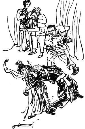 就在这时候,只听一阵敲门声,进来的是谢师傅。谢师傅来找团长,也是因为他对小吕的连连失手百思不得其解:这孩子平时演孙二娘一直不错,为什么这次老出毛病?不该呀!就算是和自己配戏紧张吧,可她是自己教了这么多年的学生,也不至于紧张到这个程度啊?谢师傅对团长说:“我总觉得这事情有点奇怪。按说我是她老师,问问她也没什么,可我发现这孩子怎么这几天见了我总躲躲闪闪的样子。要不你去问问,我看一定有原因。”