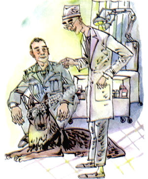 其实在这之前大甲曾立功多次,是一条名副其实的功勋犬,可就在执行了这次任务之后,大甲时常晃着脑袋“呜呜”地叫着,显出痛苦的样子。老杜心疼得死去活来,拉着大甲去看病,一检查才知道是那颗断齿在作祟,刺激了它的神经,就是补好了也没用,以后都不能正常地执行任务了,没办法,只有退役了……